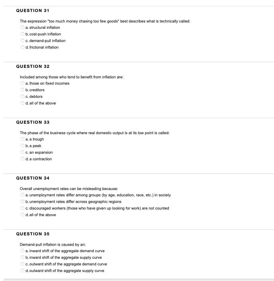 Solved Question 31 The Expression Too Much Money Chasing Chegg Com