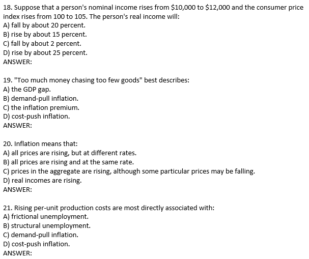 Solved 18 Suppose That A Person S Nominal Income Rises From Chegg Com